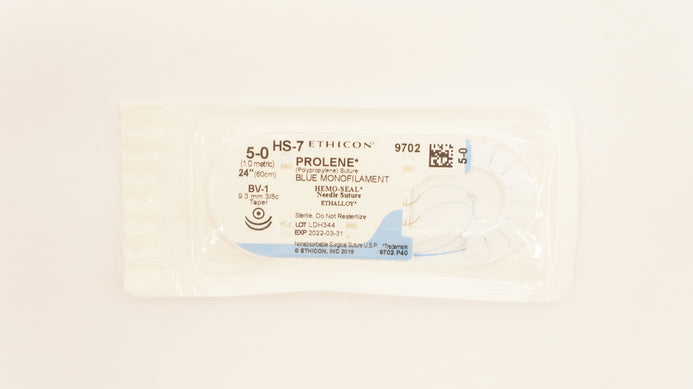 - Ethicon 9702 5-0 Prolene Polypropylene Stre BV-1 9.3mm 3/8c Taper, 24 inch (x)