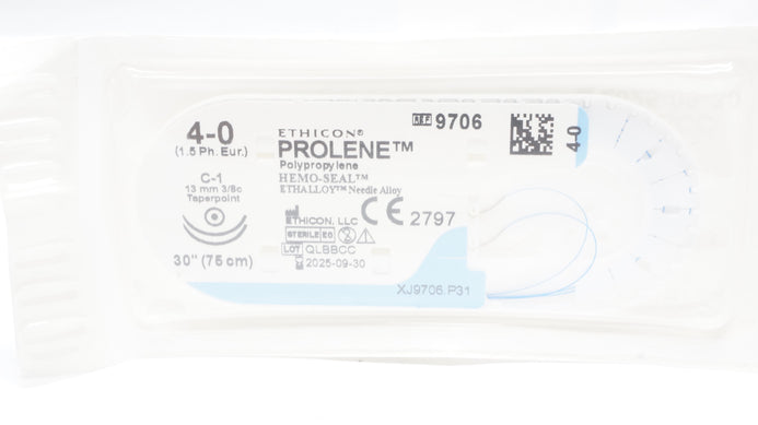 Ethicon 9706 C-1 4-0 PROLENE Polypropylene Stre C-1 13mm 3/8c Taperpoint 30inch