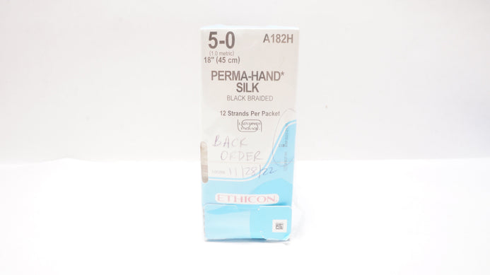Ethicon A182H 5-0 PERMA-HAND SILK Black Braided 18inch (x) - Box of 36