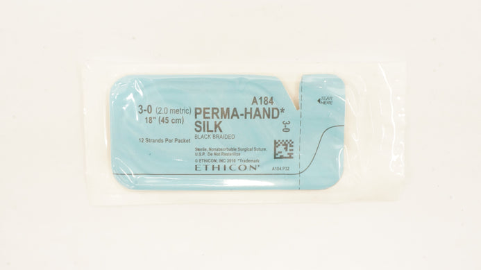 Ethicon A184 3-0 Perma-Hand Silk Surgical Suture Black Braided 18inch