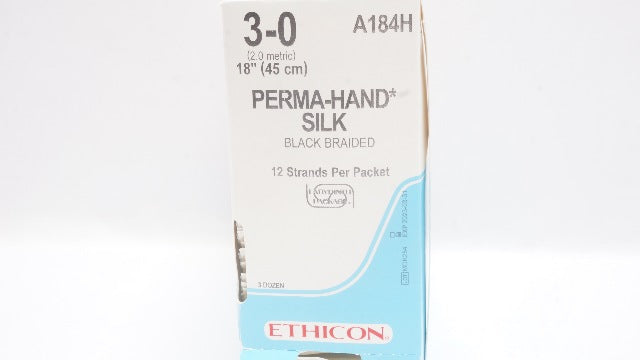 Ethicon A184H 3-0 Perma-Hand Silk Black Braided Stre 18inch (x) - Box of 34