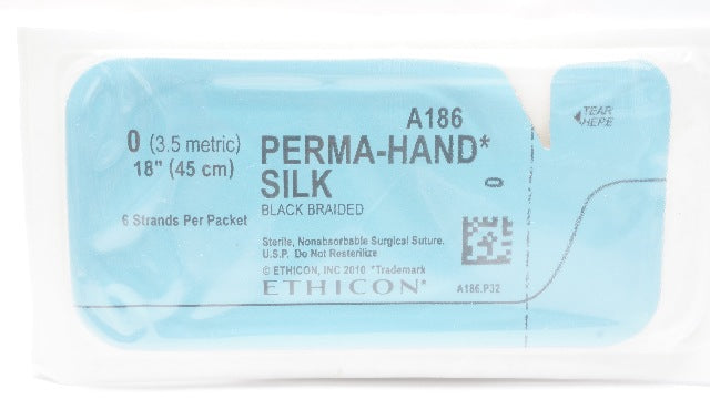 Ethicon A186 0 Perma-Hand Silk Black Braided Surgical Stre, 18 inch