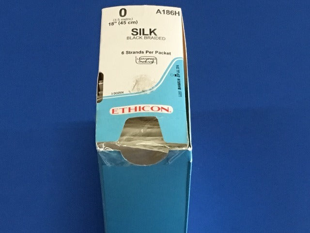 Ethicon A186H PERMA-HAND SILK, Black Braided 6-18 ~ Box of 36 (x)