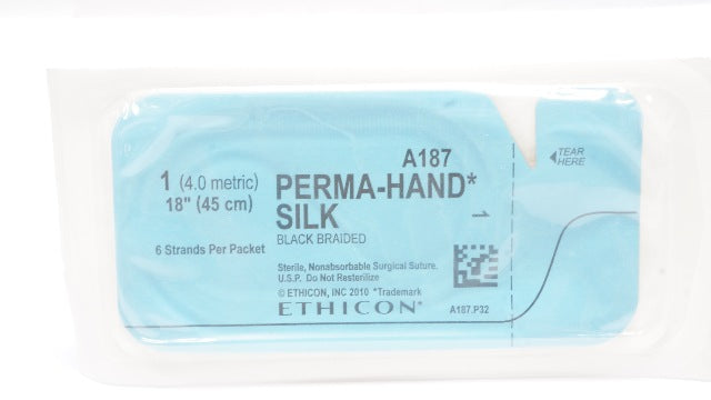 Ethicon A187 1 Perma-Hand Silk Black Braided Stre 18inch (x)