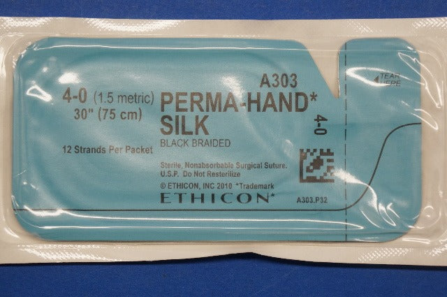 Ethicon A303 4-0 PERMA-HAND SILK, Black Braided, 30inch