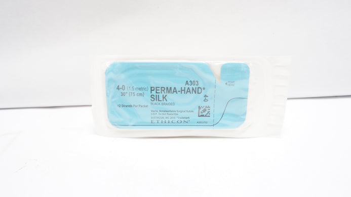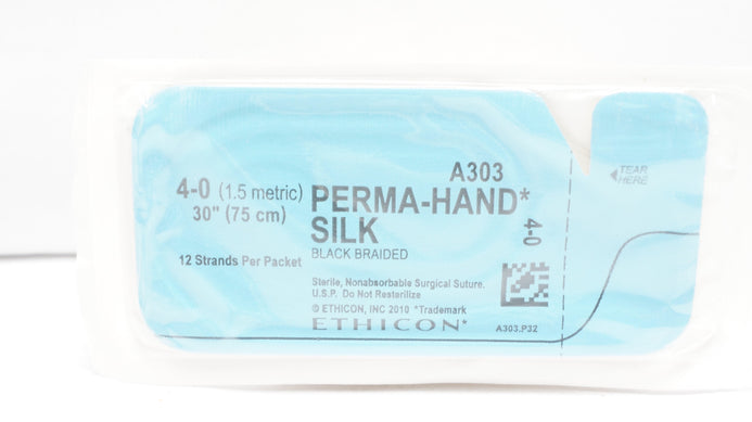 Ethicon A303 4-0 Perma-Hand Silk Surgical Suture, Black Braided 30 inch