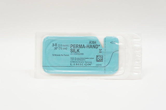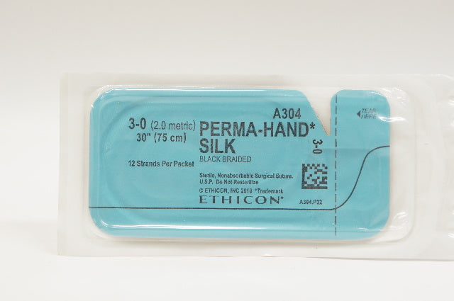 - Ethicon A304 3-0 PERMA-HAND SILK, Black Braided, 30inch