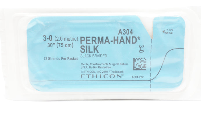 Ethicon A304 3-0 Perma-Hand Silk Black Braided Surgical Suture 30 inch