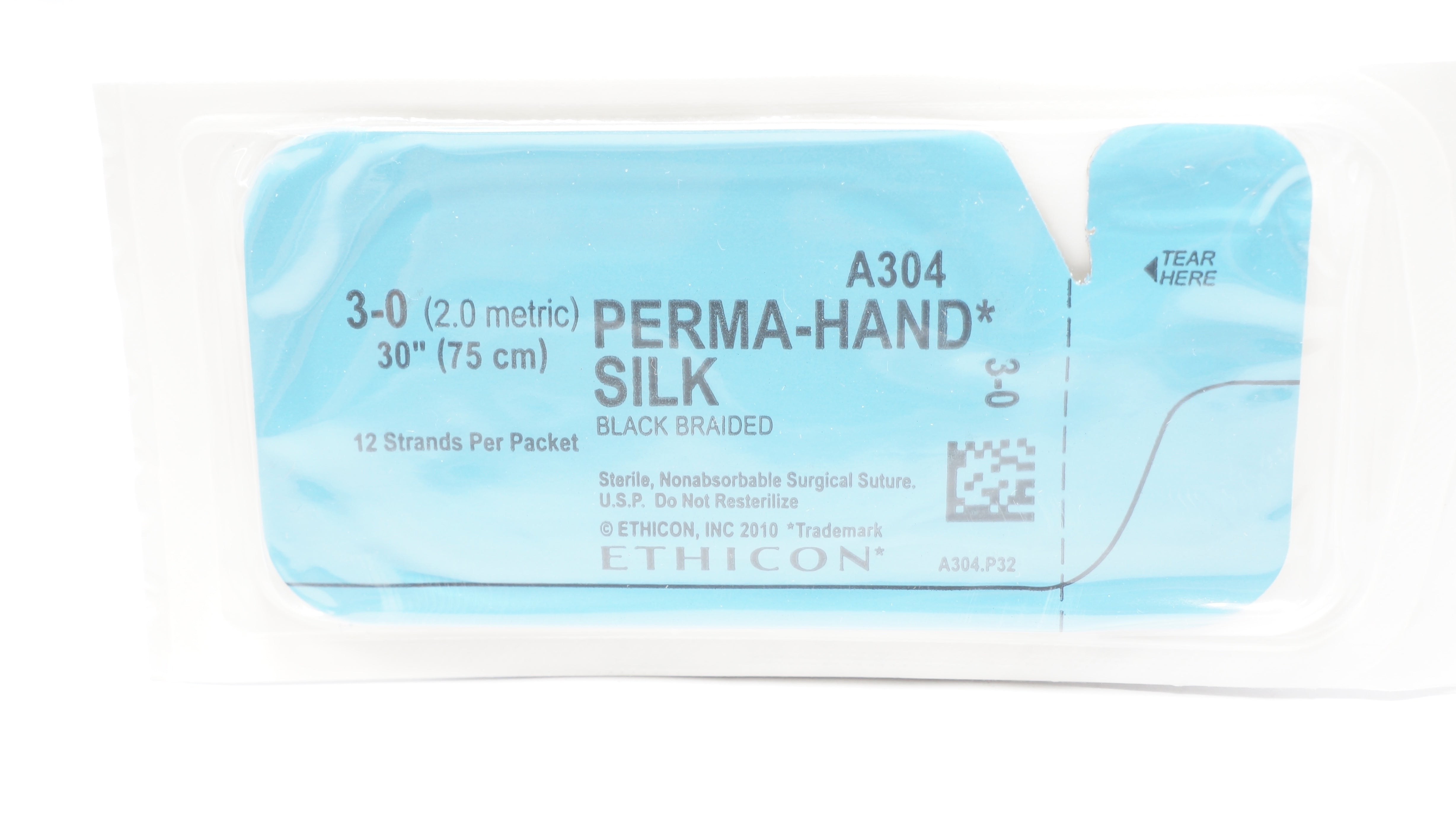 Ethicon A304 3-0 Perma-Hand Silk Black Braided Surgical Stre 30 inch