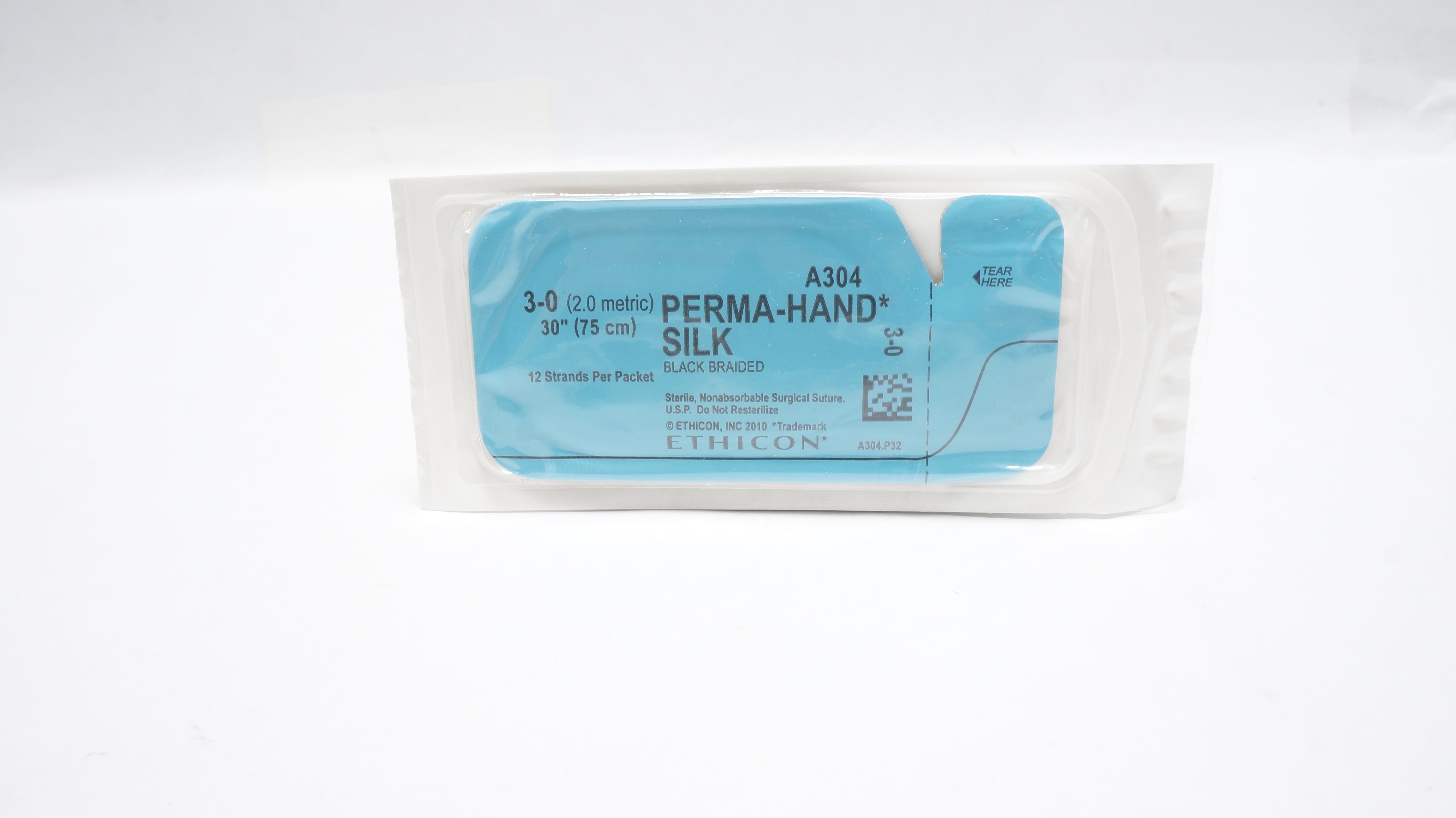 Ethicon A304 3-0 Perma-Hand Silk Black Braided Surgical Suture 30 inch