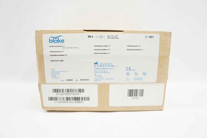 - Ethicon BCC1 BLAKE Cardio Connector 3/8inch - 1/2inch x 3/16inch - Box of 20