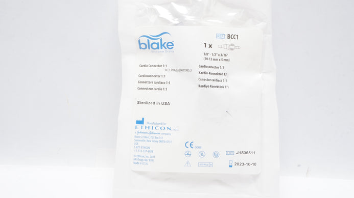 Ethicon BCC1 Blake Silicone Drains 3/8-1/2 x 3/16 inch Cardio Connector 1:1 (x)