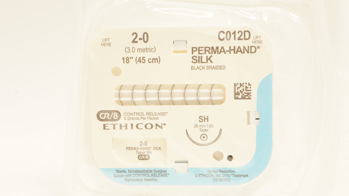 - Ethicon C012D 2-0 PERMA-HAND SILK, SH, 26mm 1/2c Taper, 18inch (x)
