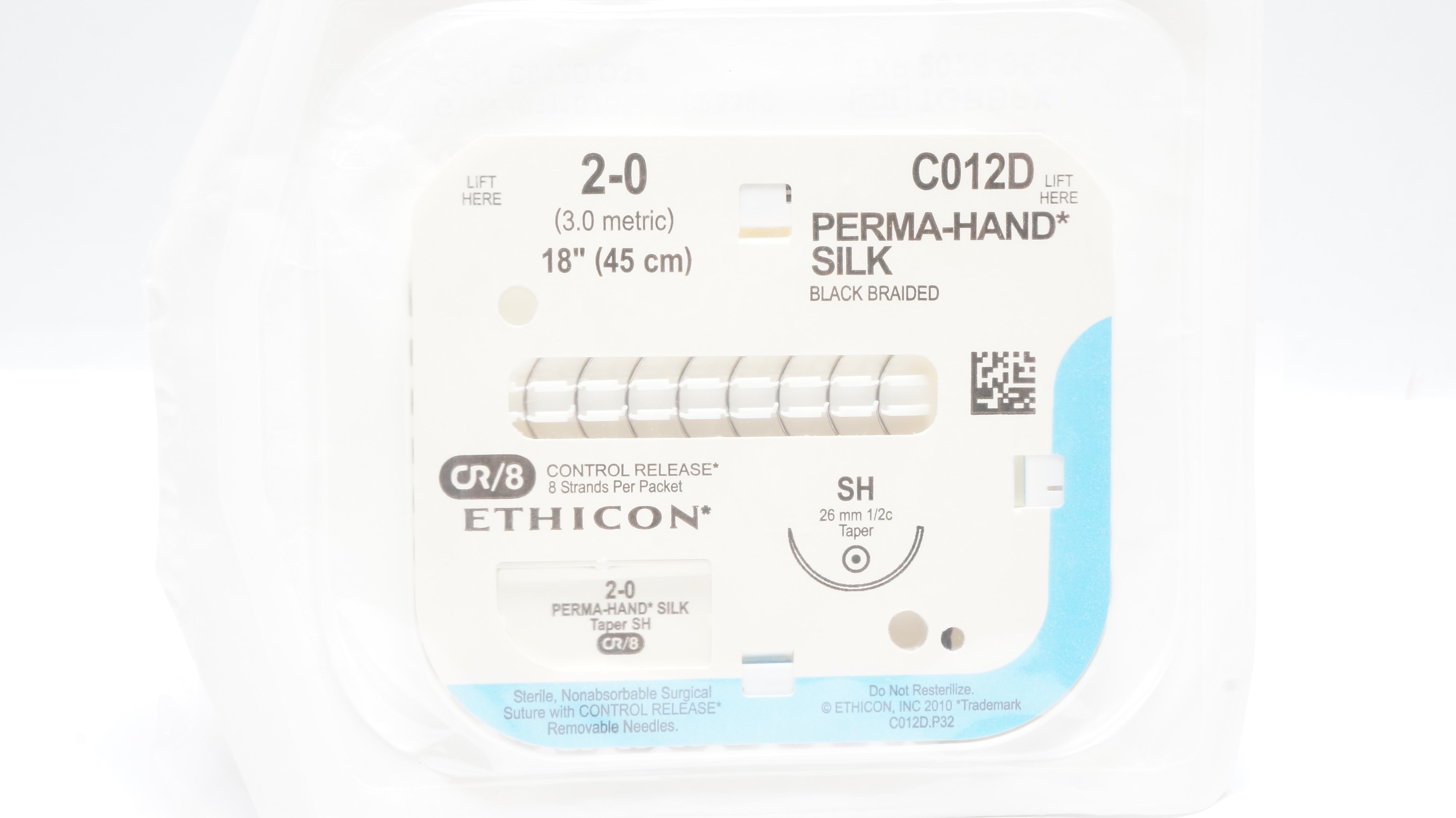 Ethicon C012D 2-0 Perma-Hand Silk, Surgical Stre SH 26mm 1/2c Taper, 18inch