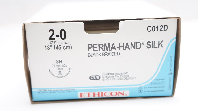 - Ethicon C012D 2-0 PERMA-HAND Surgical Stre SH 26mm 1/2c Taper 18inch - Box of 12
