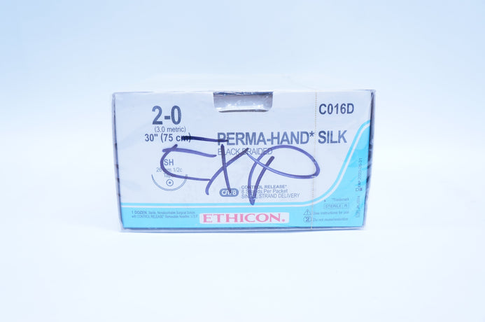 Ethicon C016D 2-0 Perma-Hand Silk SH 26mm 1/2c Taper 30inch (x) - Box of 12