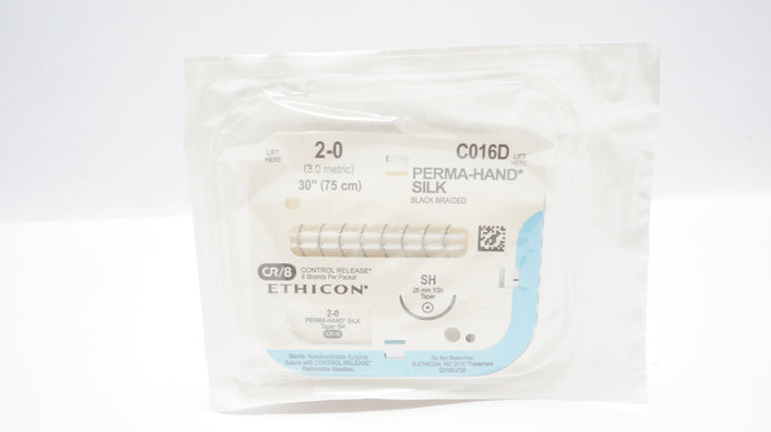 Ethicon C016D 2-0 Perma-Hand Silk Black Braided Suture SH 26mm 1/2c Taper 30inch