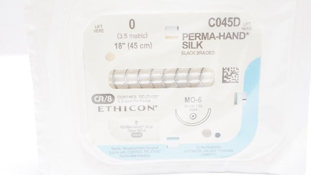 Ethicon C045D 0 Perma-Hand Silk Stre MO-6 26mm 1/2c Taper, 18inch (x)