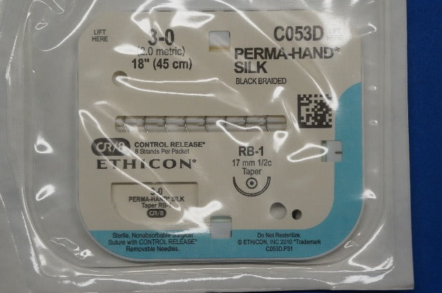 Ethicon C053D PERMA-HAND SILK, RB-1 17mm 1/2c Taper, 18", Size 3-0