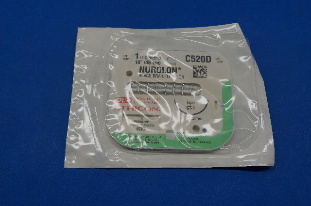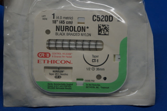 - Ethicon C520D 1 NUROLON, CT-1 36mm 1/2 Taper, Black Braided Nylon, 18