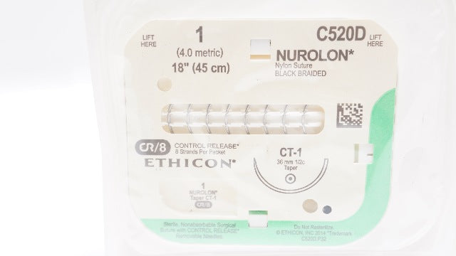 Ethicon C520D 1 Nurolon Nylon Stre СТ-1 36mm 1/2c Taper 18In CR/8 (x)