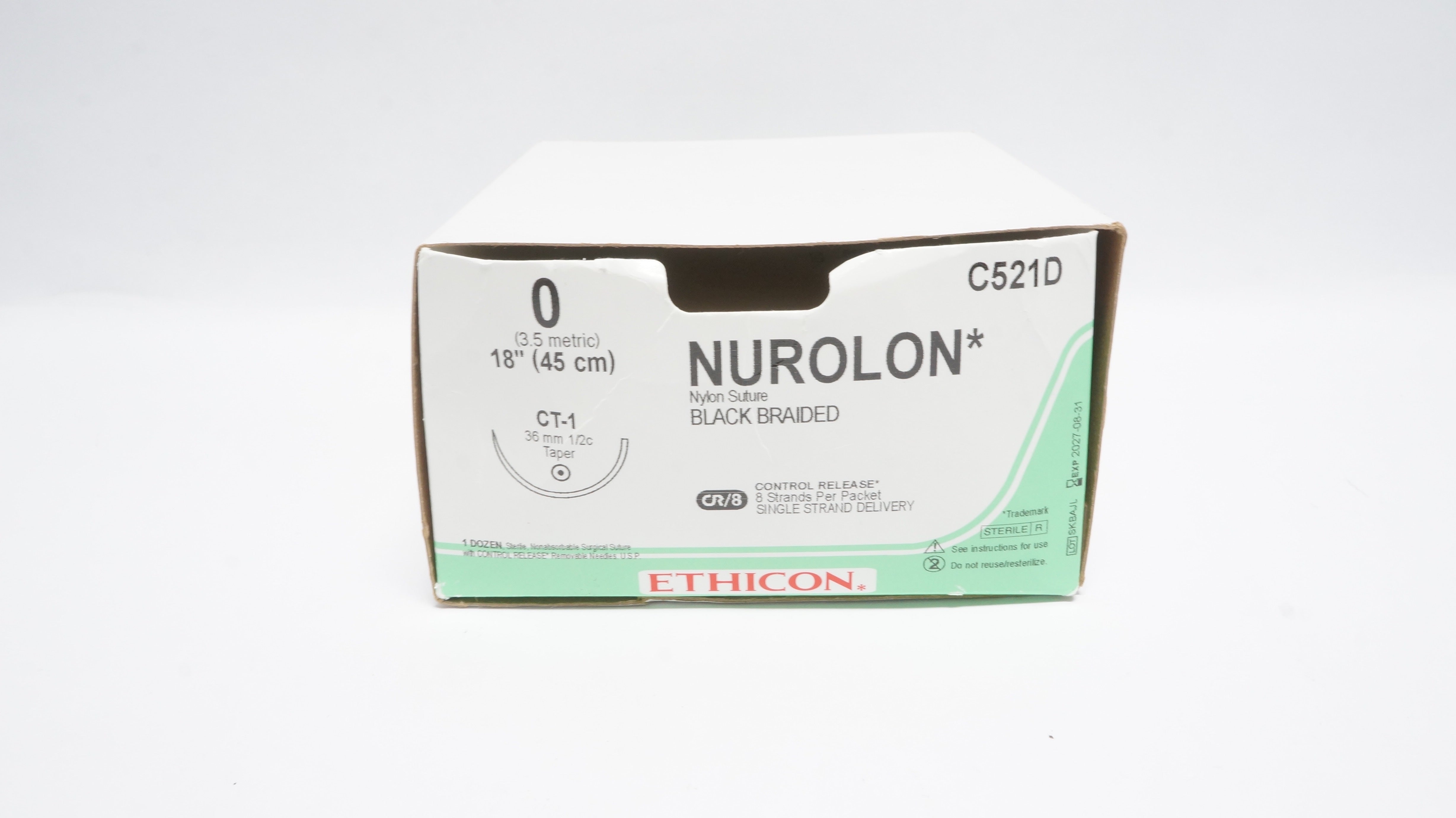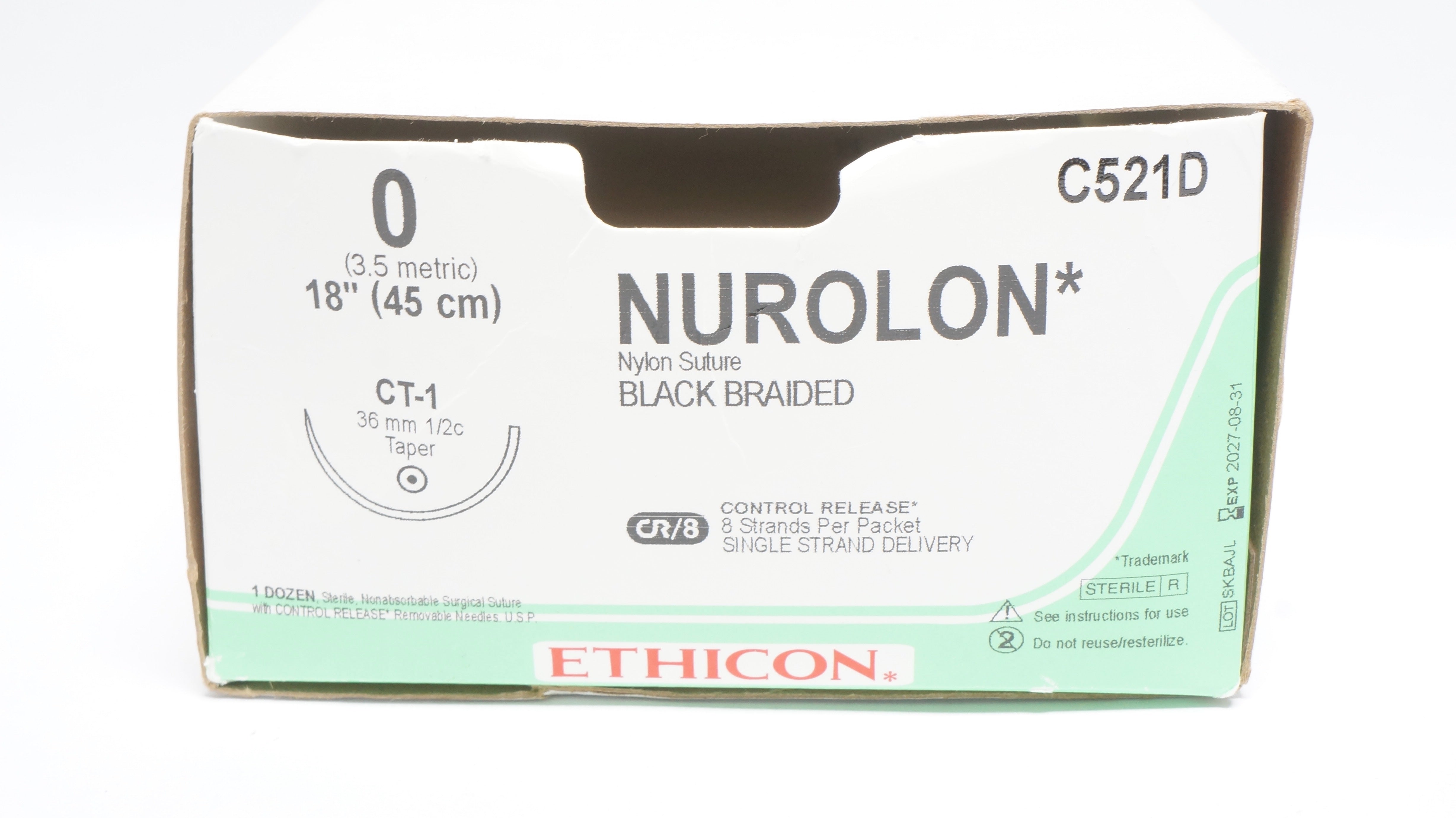 - Ethicon C521D 0 NUROLON, CT-1, 1/2 36mm, 18inch - Box of 8