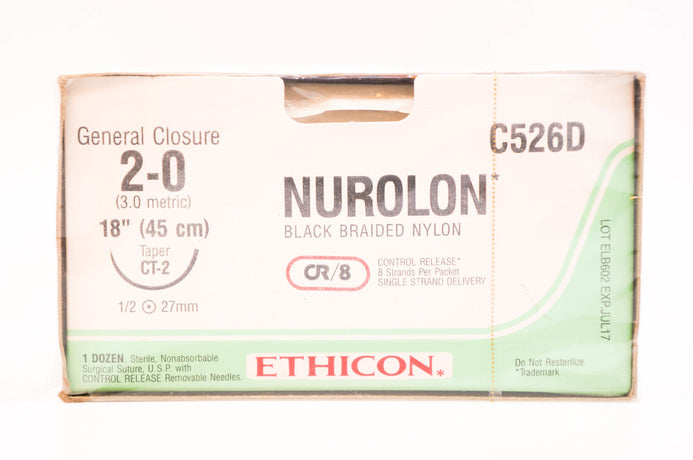 - Ethicon C526D 2-0 NUROLON, CT-2, 1/2 27mm, 18inch ~ Pack of 12 (x)