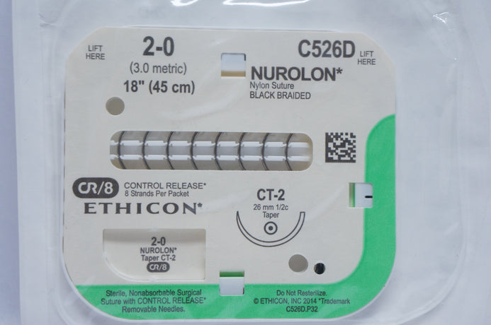 - Ethicon C526D 2-0 NUROLON, CT-2, 26mm 1/2c Taper, 18inch