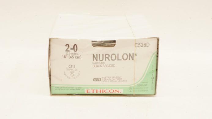 Ethicon C526D 2-0 NUROLON, CT-2, 26mm 1/2c Taper, 18inch - Box of 12