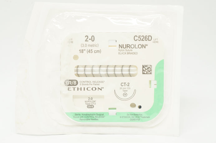 Ethicon C526D 2-0 Nurolon Nylon Stre CT-2, 26mm 1/2c Taper, 18inch (x)