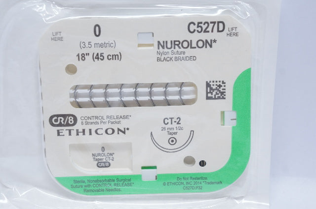 Ethicon C527D 0 NUROLON Nylon Stre CT-2 26mm 1/2c Taper, 18inch (x)