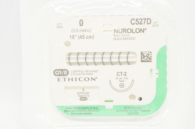 - Ethicon C527D 0 NUROLON Nylon Stre Black Braided CT-2 26mm 1/2c Taper, 18inch