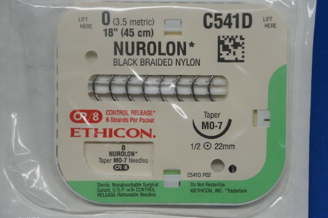 - Ethicon C541D 0 NUROLON, MO-7 22mm 1/2 Taper, Black Braided Nylon, 18 (x)