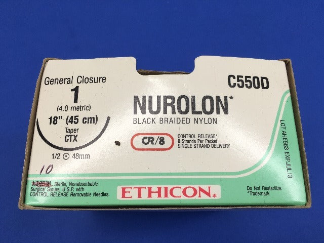 - Ethicon C550D NUROLON CTX, Black Braided 8-18 - Box of 10