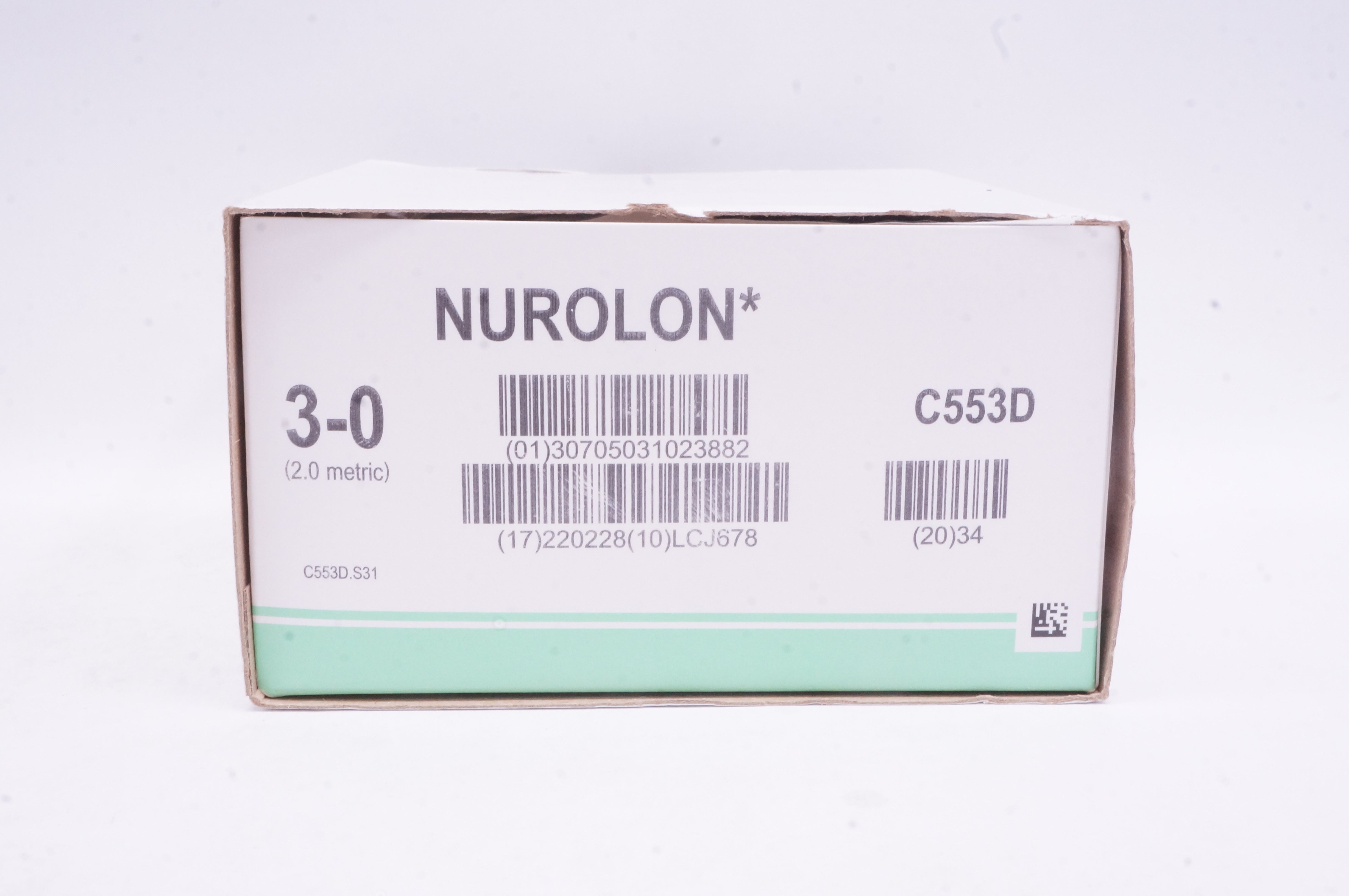 Ethicon C553D 3-0 NUROLON, RB-1, 17mm 1/2c Taper, 18inch - Box of 11