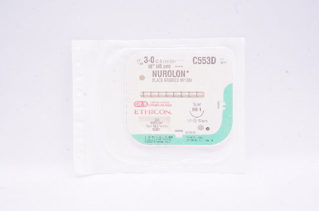 - Ethicon C553D 3-0 NUROLON, RB-1, 17mm 1/2c Taper, 18inch (x)