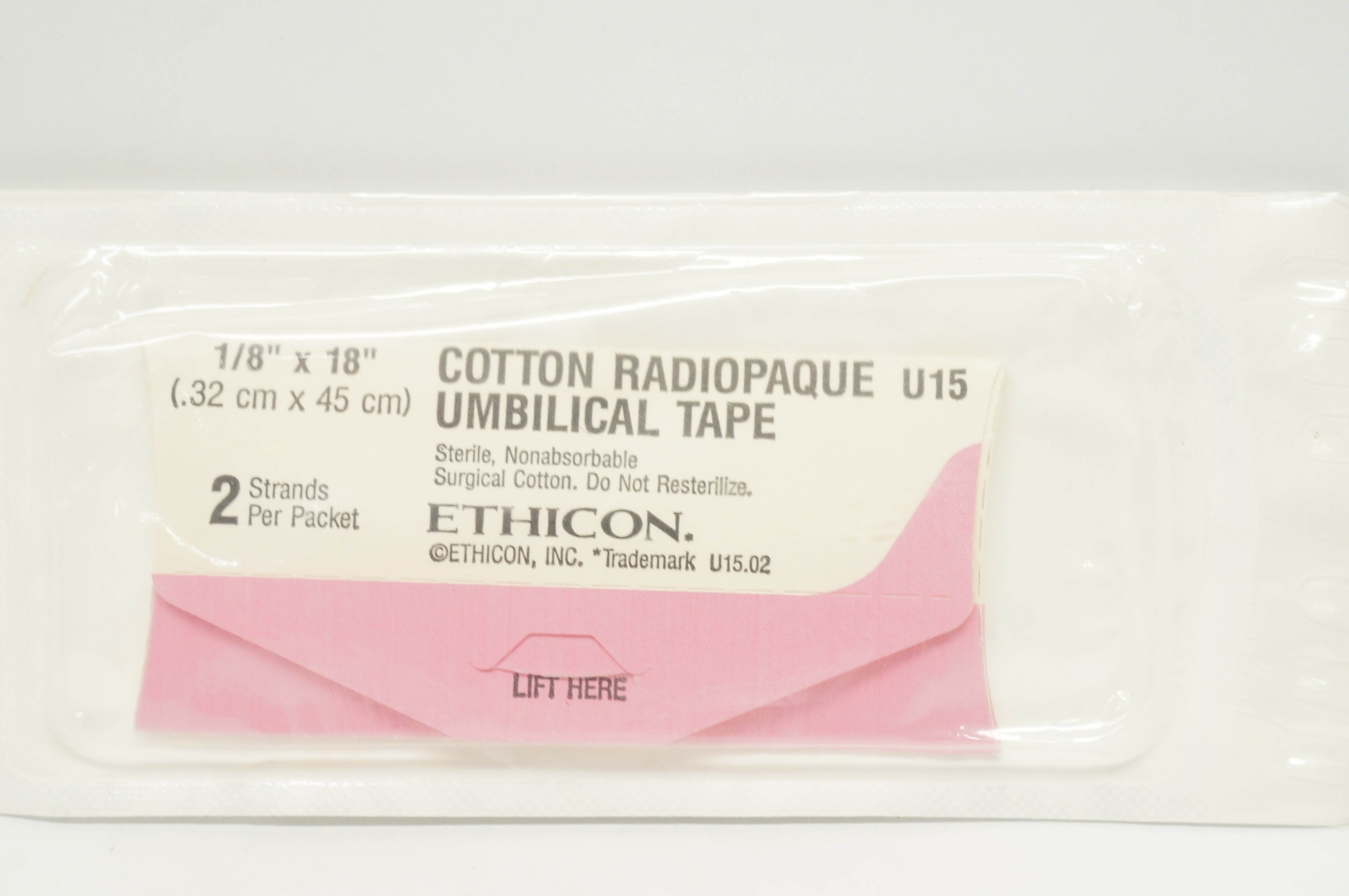 Ethicon CCK337 Cotton Radiopaque Umbilical Tape 1/8inch x 18inch