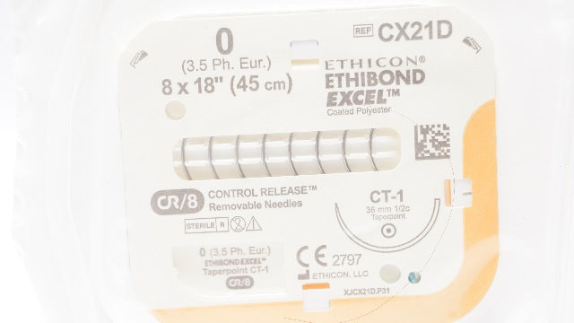 Ethicon CX21D 0 EthibondExcel Polyester Stre CT-1 36mm 1/2c Taperpoint 18inch(x)