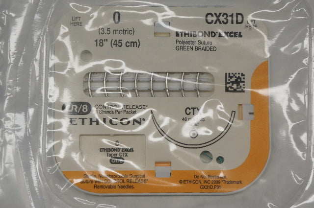 Ethicon CX31D 0 ETHIBOND EXCEL, CTX 18mm 1/2c Taper, Green Braided, 18
