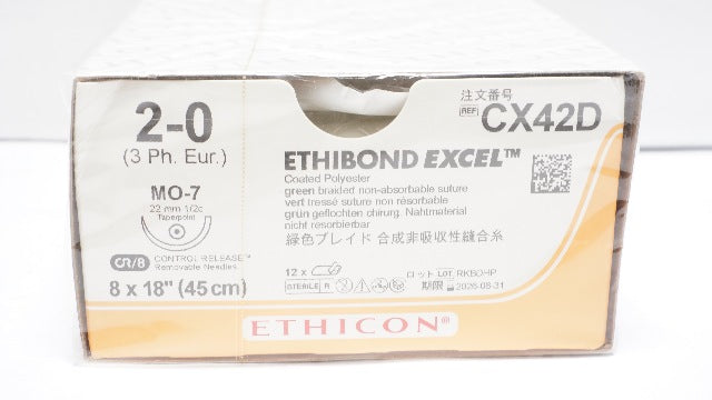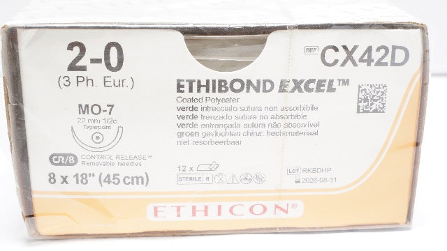 - Ethicon CX42D 2-0 ETHIBOND EXCEL MO-7 1/2 22mm 18inch - Box of 12
