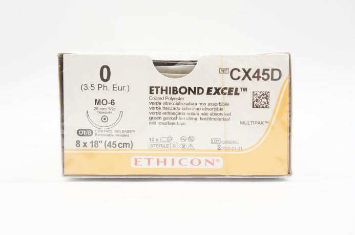 Ethicon CX45D 0 ETHIBOND EXCEL, Coated Polyester, MO-6, 8 x 18inch - Box of 12
