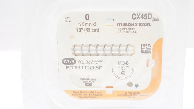 Ethicon CX45D 0 Ethibond Excel Polyester Green Braided Suture MO-6 26mm 1/2c Taper 18inch
