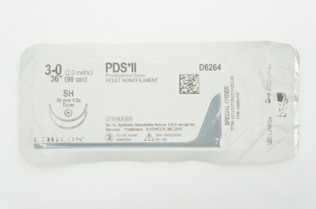 Ethicon D6264 3-0 PDS II, SH, 26mm 1/2c Taper, 36inch