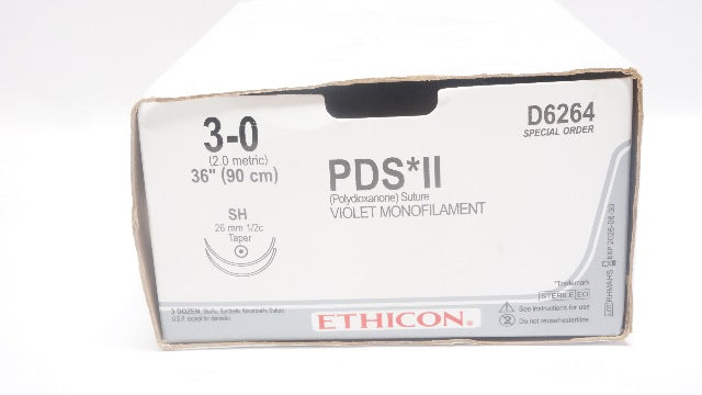 Ethicon D6264 3-0 PDSII Polydioxanone Stre SH 26mm 1/2c Taper 36inch - Box of 36