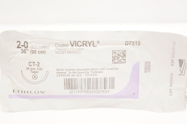 Ethicon D7510 2-0 Coated Vicryl Violet Braided CT-2 26mm 1/2c Taper 36inch