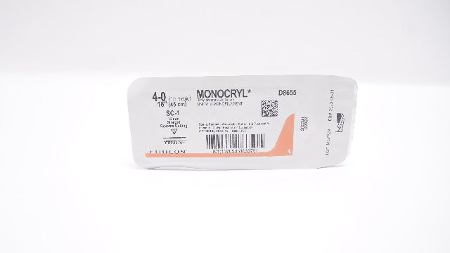 - Ethicon D8655 4-0 Monocryl, SC-1, 13mm Straight Reverse Cutting, 18inch (x)