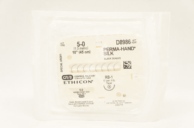 Ethicon D8986 5-0 Perma-Hand Silk, RB-1, 17mm 1/2c Taper, 18inch