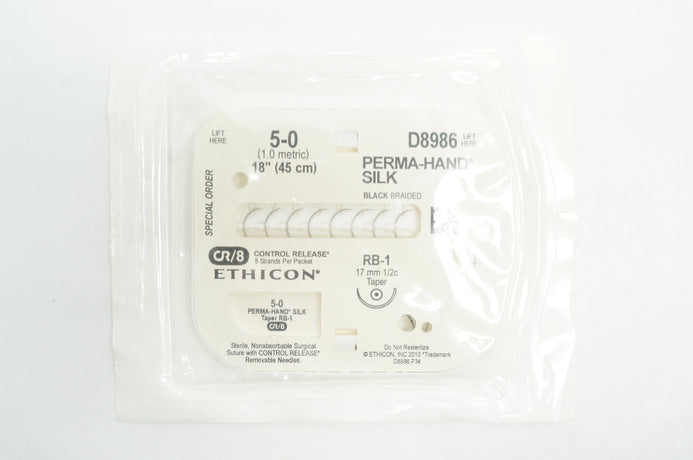 Ethicon D8986 5-0 Perma-Hand Silk, RB-1, 17mm 1/2c Taper, 18inch (x)