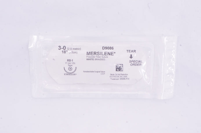 - Ethicon D9086 Mersilene Polyester Fiber Stre White Braided 3-0 RB-1 18inch