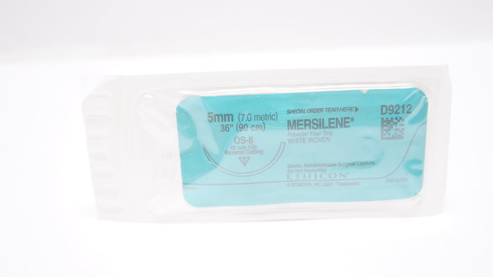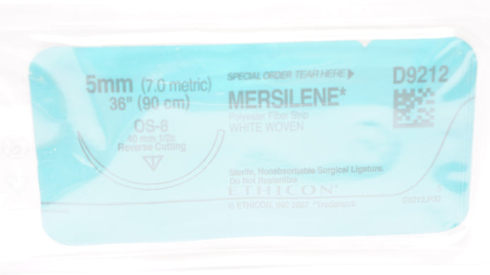 Ethicon D9212 5 MERSILENE Polyester Fiber Strip White Woven Surgical Ligature OS-8 1/2c 40mm Reverse Cutting 36inch